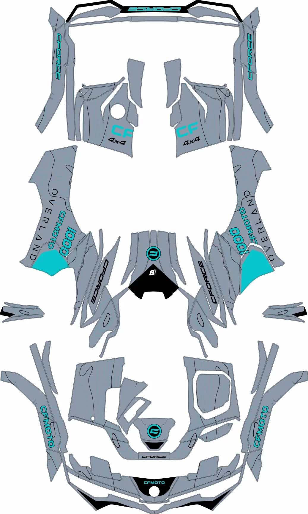 Portada » Tienda » Gráficas ATV Quad » CFMoto ATV » Kit de Gráficas CF Moto cforce g3 topograph grey